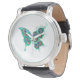 Butterfly with Green Peacock Feathers Watch