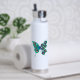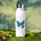 Butterfly with Green Peacock Feathers Water Bottle