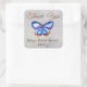 Beautiful watercolor blue butterfly and a canvas background, elegant Square Stickers for bridal shower