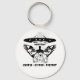 Printed on one side of a standard button that is attached to a lightweight keychain