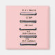 Pink magnet with buttons like a cd or dvd. Play / pause, stop, repeat, skip and search. Customisable.