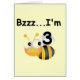 An oh so cute bumblebee and text that reads "Bzzz...I'm 3" on Buzz Bumblebee 3rd Birthday T-shirts, bodysuits, cards, stickers, mugs, magnets, tote bags, and other third birthday apparel and gifts.