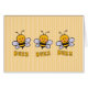 Three cute simple cartoon bees each with the word 'buzz' below them.