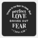 BW 'Perfect Love Drives Out Fear' - 1 John 4:18 Square Sticker