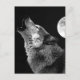 BW Wolf Howling at Moon Holiday Postcard