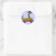 Hilarious green and yellow cartoon boa constrictor snake is wearing a reversed blue baseball cap and riding a cool red skateboard on this cute and fun sticker design. You can add custom text when ordering.