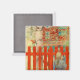 Vintage brightly coloured painting of two little girls looking through the fence at each other and making friends. Fine art by Swedish artist Carl Larsson.