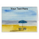 A simple watercolor landscape of welcoming beach chairs and beach umbrella by the sea. Customise by changing the text to suit yourself!