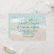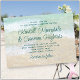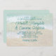 Beach background wedding invitation with bride and groom inviting guests. Include full names of the couple in teal blue script. Choose paper upgrades, or download the design to print your own.