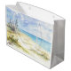 Beautiful gift bags with seascape in impressionistic watercolors. Blue skies and caribbean blue seas wash onto sandy shores.