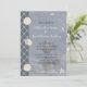Having your wedding at the beach, if so these invitations might be the one's for you. Nautical touches of blues, seashells, rope netting, starfish, and a lightened photo of a seagull on the waters edge of the beach as the main background. Backside has the same solid blue colour as on the left hand side of this invitation with a rope and starfish and again the words "By the seashore" which can all be removed. Front side just needs your own wedding information to complete it.