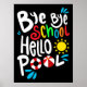 'Bye Bye School Hello Pool' cool quote for a teacher or student to wear on the last day of school or summer break.