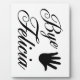 Fancy cursive lettering that says, BYE FELICIA. With a hand waving at you.