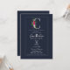 C Monogram Last Initial Modern Blue Floral Wedding Invitation