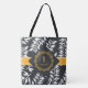 Cabana Theme in Charcoal and White with Yellow Tote Bag