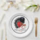 Set of eight 9” paper plates with a cabaret image of a black feathered fan, red and black balloons, and a red mask. See matching candy jar, espresso cup, mug, flask, pitcher, shot glass, teapot and coasters. See the entire Cancan Plate collection in the FOOD/BEV | Dishes section.