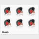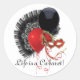 Round sticker to match our "Cabaret" invitation with an image of a black feathered fan, red and black balloons, and a red mask. Optional text. See matching custom-cut vinyl sticker, invitation, envelope, confetti, favour bag, favour box, favour tag, gift bags, label and wrapping paper. See the entire Cancan Sticker collection in the INVITES | Stickers & Labels section.