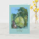 painting of cabbage with baby bunny and dragonfly and inch worm on new baby card