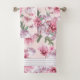 Lovely towel set with cabbage roses in various shades of pink. Perfect for guest baths, new bath renovations, gifting and more.