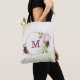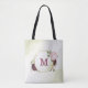 Beautiful tote bag featuring cabernet purple and pink flowers and green leaves