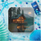These paper plates feature a rustic lake house with cosy lighting and reflections.