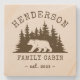 These stone coasters feature a walking bear in the woods over a dark wood grain background. Add your custom family name, a personalizable name of your cottage, cabin, lake house or any other, as well as the year established.
