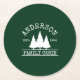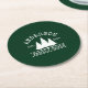 Family Name Cabin Forest Green with Pine Trees Paper Coaster