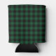 Family Name Cabin Green Buffalo Plaid with Pine Trees Can Cooler