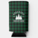Family Name Cabin Green Buffalo Plaid with Pine Trees Seltzer Can Cooler