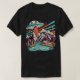 I give wanted to give this a 4 instead of a 5 because these Basic DARK T0shirts run unexpectedly SLIM or Narrow. Which is great if you do not have a potbelly, but I have a paunch. It isn't the shirt's fault that I've got a beer belly. The design and shirt itself is a quality cotton shirt. The color is more of a deep purple, but still a very pretty color. The Basic DARK T-shirts run a bit SLIMMER than the Basic Ts. The neck is a fraction narrower (or seems to be narrower) also. I'm a paunchy middle-aged woman and my neck is 12 inches (31cm) thick and the neckline fell about the same as in the photo of the man, and I had the desire to tug it a bit. So if you're a thick necked man or like loose shirts, be aware these are slimmer shirts. Once I get rid of my lockdown paunch it'll look great. The shirt washed well in cold water with no apparent bleeding. We don't have a dryer, so it hung dry. Did not shrink. Love the colors and the design. The design looks smaller on my shirt than it does on the model on-line. But still, it looks good on the shirt. The printing looks as it does on the model, just the size seems fractionally smaller. Washed garment in cold water, hung dry and design appeared unaffected.