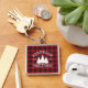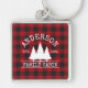 Family Name Cabin Red Buffalo Plaid with Pine Trees Keychain