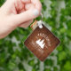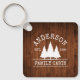 Family Name Cabin with Pine Trees Keychain - Rustic Wood Print