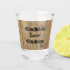 "Cabin sweet Cabin" is the sentiment on this shot glass featuring a rustic design which is adorned with a beautiful photo of woodgrain. This piece of wood is well on its way to becoming a petrified piece which is captured in the sparkles in the grain. The vertical stripes and unique pattern of the wood lends a hint of nature to your relaxing moment with your drink of choice. "Cabin sweet Cabin" can easily be customised if you desire.