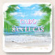 This plastic hard coaster set is shown with a Cabo San Lucas beach palm print.