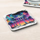 This plastic hard coaster set is shown with a Cabo San Lucas beach palm print.