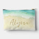 This beautiful zipper pouch features the famous arch (El Arco) at Lands End on the Baja peninsula in Mexico. The watercolor painting of the arches was painted by my daughter which makes this bag especially unique. Below the arches is a wave crashing along the shoreline with a happy couple sitting under a palapa, watching the sun set. The back has a watercolor shoreline with a place to personalise with a name. Colours include brown, aqua, turquoise and sandy yellow.
