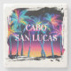 This marble stone coaster set is shown with a Cabo San Lucas beach palm print.