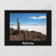 Postcard with giant cactus on Isla del Pescado inside the Salar de uyuni salt flats near Uyuni in Bolivia with a black border and the text: 'Bolivia'.