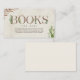 Boho baby shower diaper raffle theme with "BOOKS" lettering in leather inspired faux texture decorated with boho cactus and other botanical designs. Botanical designs at corners. Background is watercolor inspired.