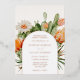 Wedding invitation featuring an arched frame of watercolor cactus and desert flowers. Customise with your information. Click "click to customise further" to change the font style, size or colour.