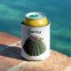 You can change the background colour and change the text on this can insulator sleeve. The image is derived from my original acrylic painting, Barrel Cactus.