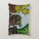 The cushion is small to medium sized. It can be washed. It is well constructed. The material used is pleasant and feels decent quality. It has a very slight plush feel which is good. It is well labelled and its care clearly stated. Theres nothing not to like about it. All in all a good item. The deduction of one star overall is due to long delays in delivery to the UK. It's not clear if this was due to Zazzle or somewhere else in the chain as I did not receive status updates of dispatch or progress. I cannot comment anymore on that other than to say that was our experience but it may not be the same for you. The printing was surprisingly close to what we were expecting. Its an art piece and on material so its hard to assess the precision of printing but it seems close to the original. The soft lines are reproductions of the original. The colour is a fair reflection of the painting. This was printed in the US and it looks like US quality. No issues.