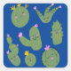 Cactus Doodle Cartoon Funny Blue Square Sticker