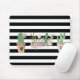 Cactus Flower Black White Stripes Mouse Mat