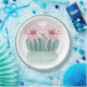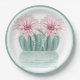 A pattern of a watercolor Cactus Flower in the centre of a ring of pink.