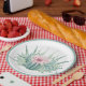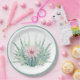 A pattern of a watercolor Cactus Flower in the centre of a ring of pink.