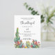 A white background decorated with colourful floral cacti. Personalise and your names and details.