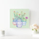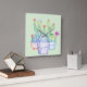 Cactus Flowers Coral Mint Green Watercolor Pink Square Wall Clock