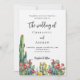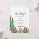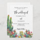 A white background decorated with colourful floral cacti. Personalise and your names and details.