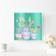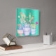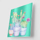 Cactus Flowers Mint Pink Peach Coral Painting Square Wall Clock